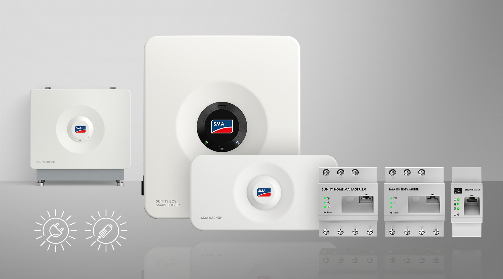 La soluzione per l’utilizzo flessibile ed efficiente di energia solare con ulteriore sicurezza in caso di interruzione di corrente con Sunny Boy Smart Energy, SMA Energy Meter o Sunny Home Manager 2.0, soluzione di backup SMA e SMA Home Storage