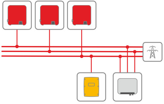 Vid användning av trefasiga solcellsväxelriktare i enfasiga eller trefasiga lagringssystem behöver också Sunny Home Manager 2.0 eller SMA Energy Meter användas, då dessa enheter kan leverera mätvärdena med den upplösning som krävs.